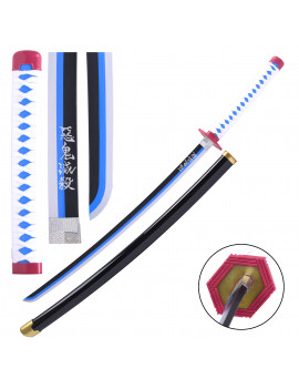 Katana de Giyu Tomioka - Lame Bois -...Katana en bois, idéal pour le cosplay.Réplique de l'épée de Giyu Tomioka du Manga animé Demon Slayer.La lame est en bambou Nichirin, le fourreau est en bois laqué en...