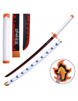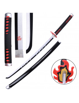 Réplique de l'épée de Kyojuro Rengoku du Manga animé Demon Slayer. La lame est en bambou noir et rouge et le fourreau est en...