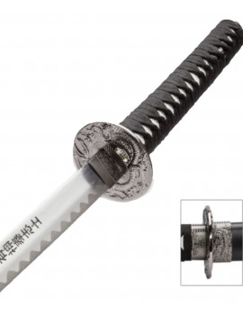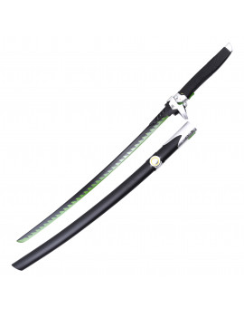 Katana de Genji - OverwatchL'épée de Genji dans le jeu Overwatch.Lame en acier inoxydable deux tons, noire avec liseré dentelé vert. La garde est en acier plein avec gravure. Fourreau en bois...