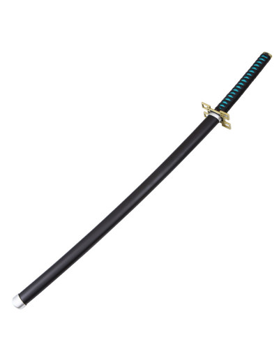 Katana de Sanemi Shinazugawa - Lame...Réplique de l'épée de Sanemi Shinazugawa du Manga animé Demon Slayer. La lame est en bois décorée de vert formant des vagues.