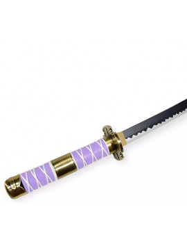 One Piece : Katana Enma de Zoro en...Le fourreau comme le manche, sont en bois laqué violet avec un lien rouge.