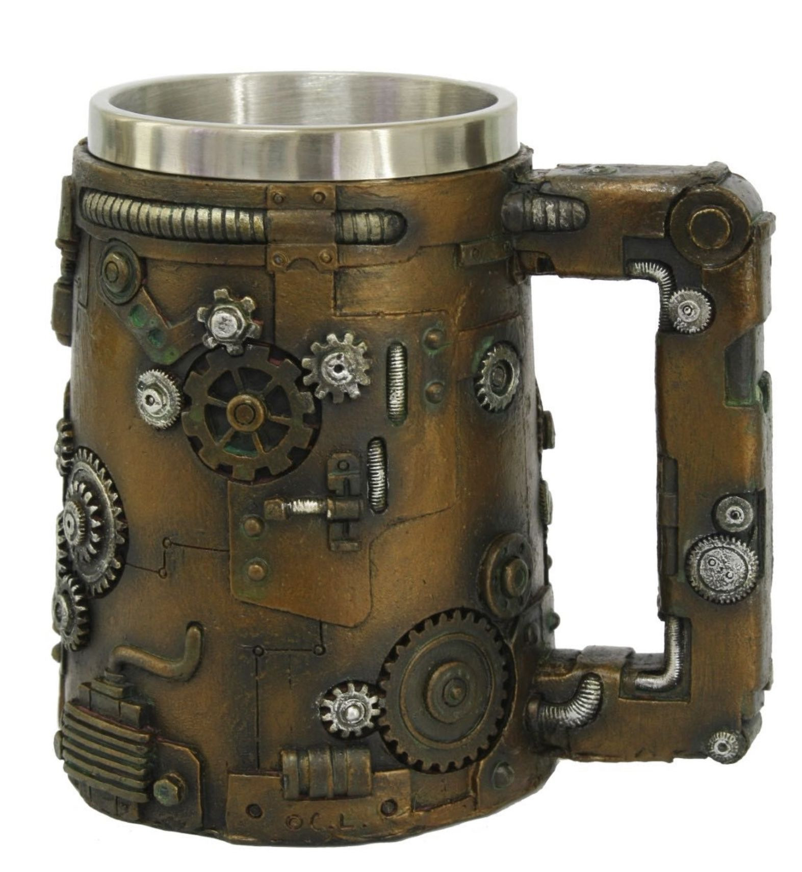 Chope avec des rouages de style Steam Punk en résine d'une hauteur de 14cm.