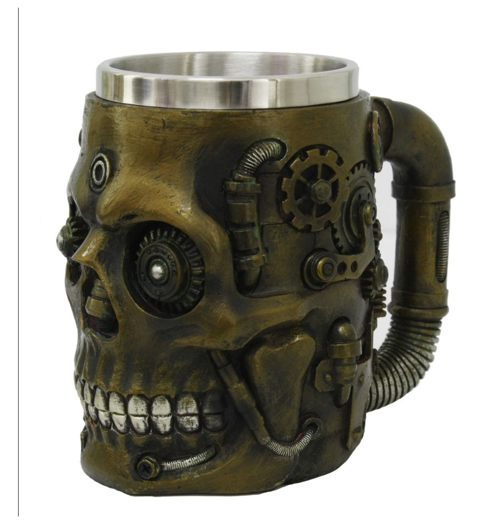 Chope décorée d’un crâne de style Steam Punk en résine d'une hauteur de 14cm.