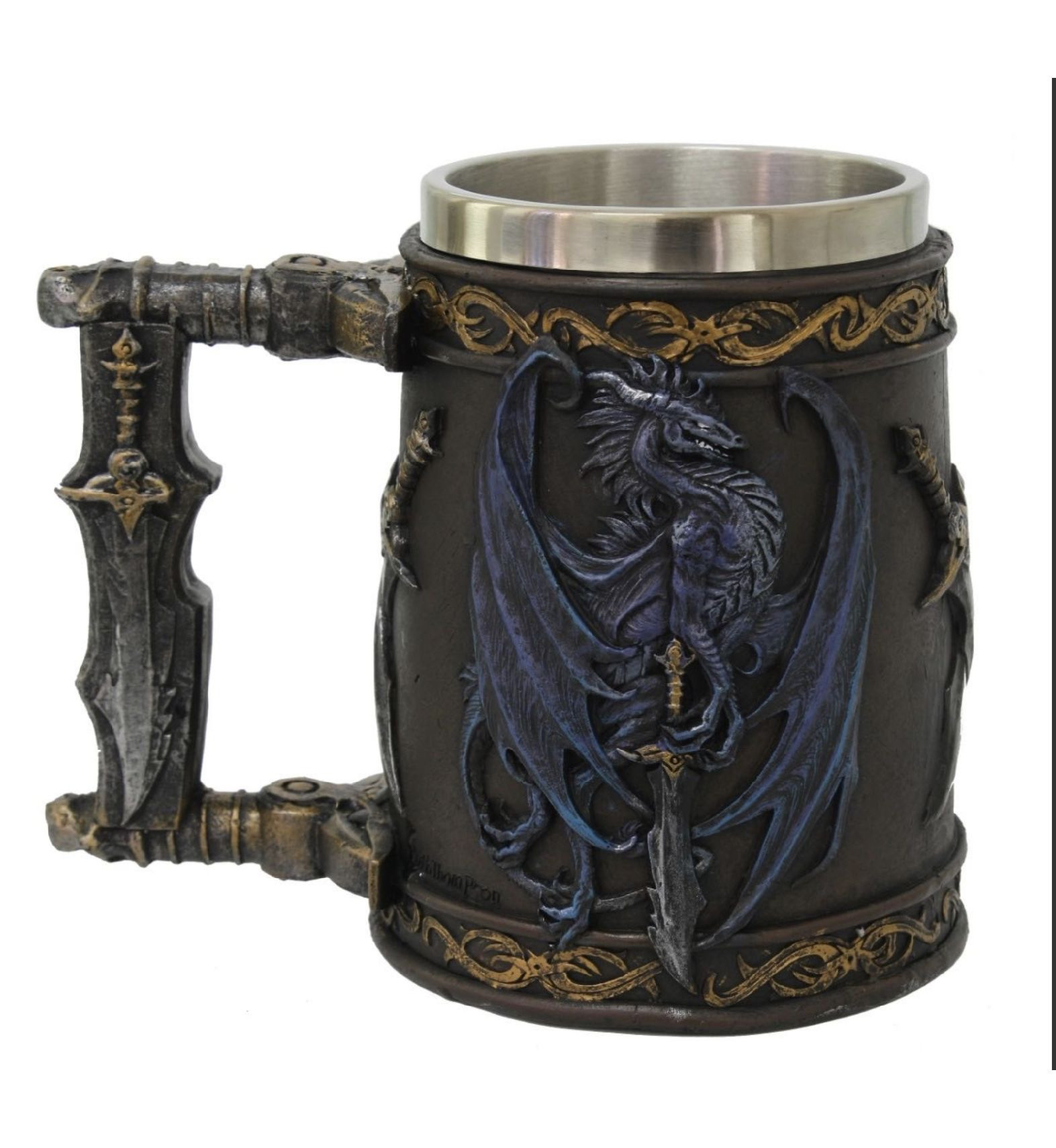 Chope dragon bleu en résine d'une hauteur de 14cm.