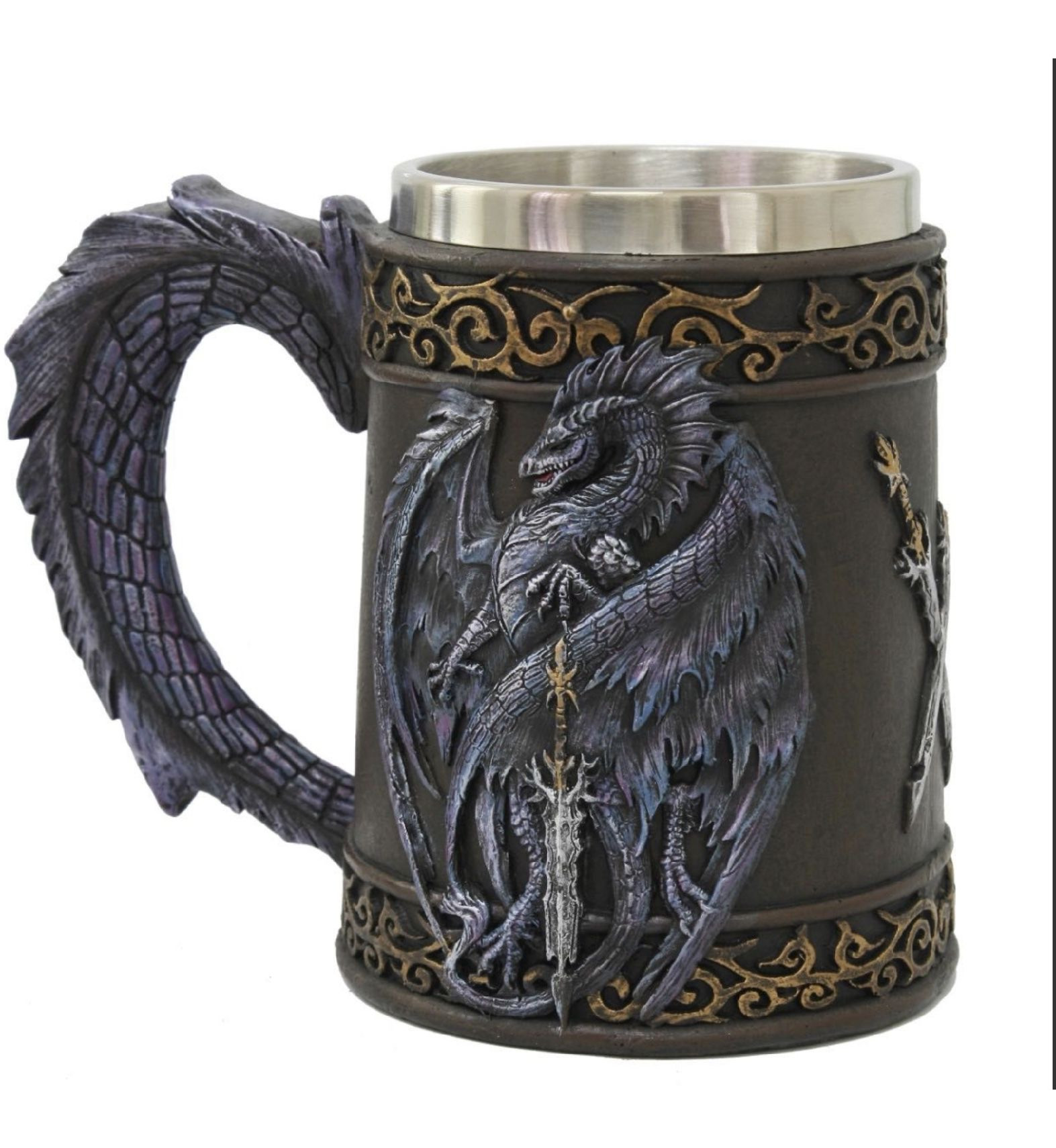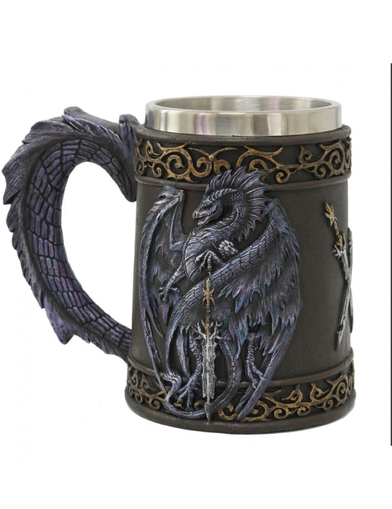Chope dragon bleu en résine d'une hauteur de 14cm.