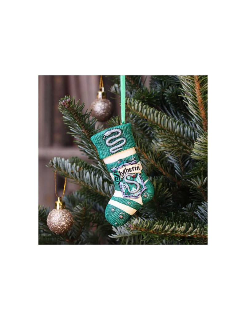 Ajoutez une touche de magie à votre sapin de Noël avec cette superbe décoration chaussette serpentard, la maison de Drago Malfoy. La décoration est en polyrésine, peinte à la main et un ruban de satin vert est présent pour la suspendre facilement. Un fantastique cadeau de fin d'année pour tous les fans de Harry Potter.
