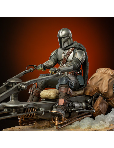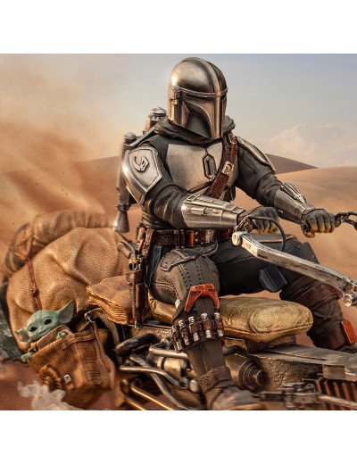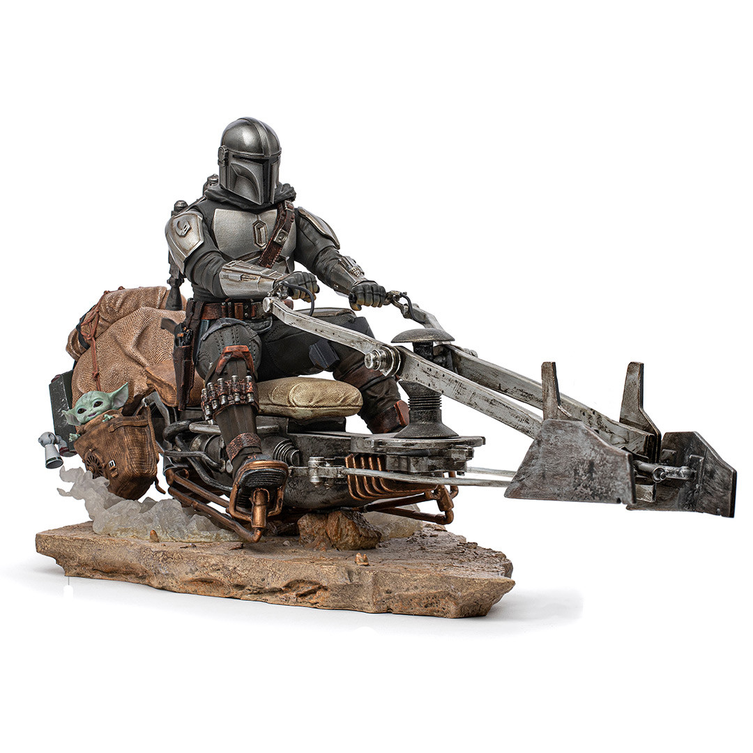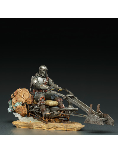 Din Djarin & Grogu on Speederbike - Iron Studios - Star Wars The Mandalorian