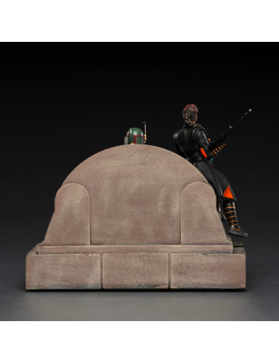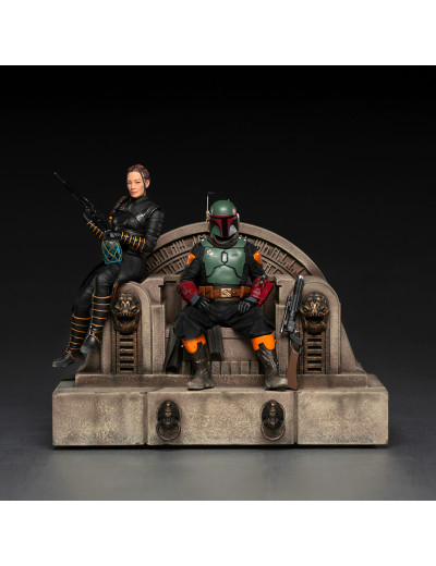 Figurine de Boba Fett et Fennec Shand par Iron Studios. Provenant de l'univers Star Wars - The Book of Boba Fett, les deux chasseurs de prime prennent la relève de Jabba le Hutt après les évènements survenues lors du Retour du Jedi.