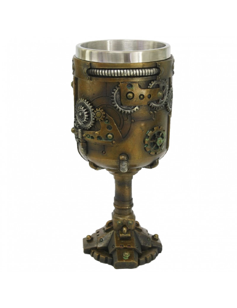 Calice Steam Punk orné de plusieurs rouages métalliques .