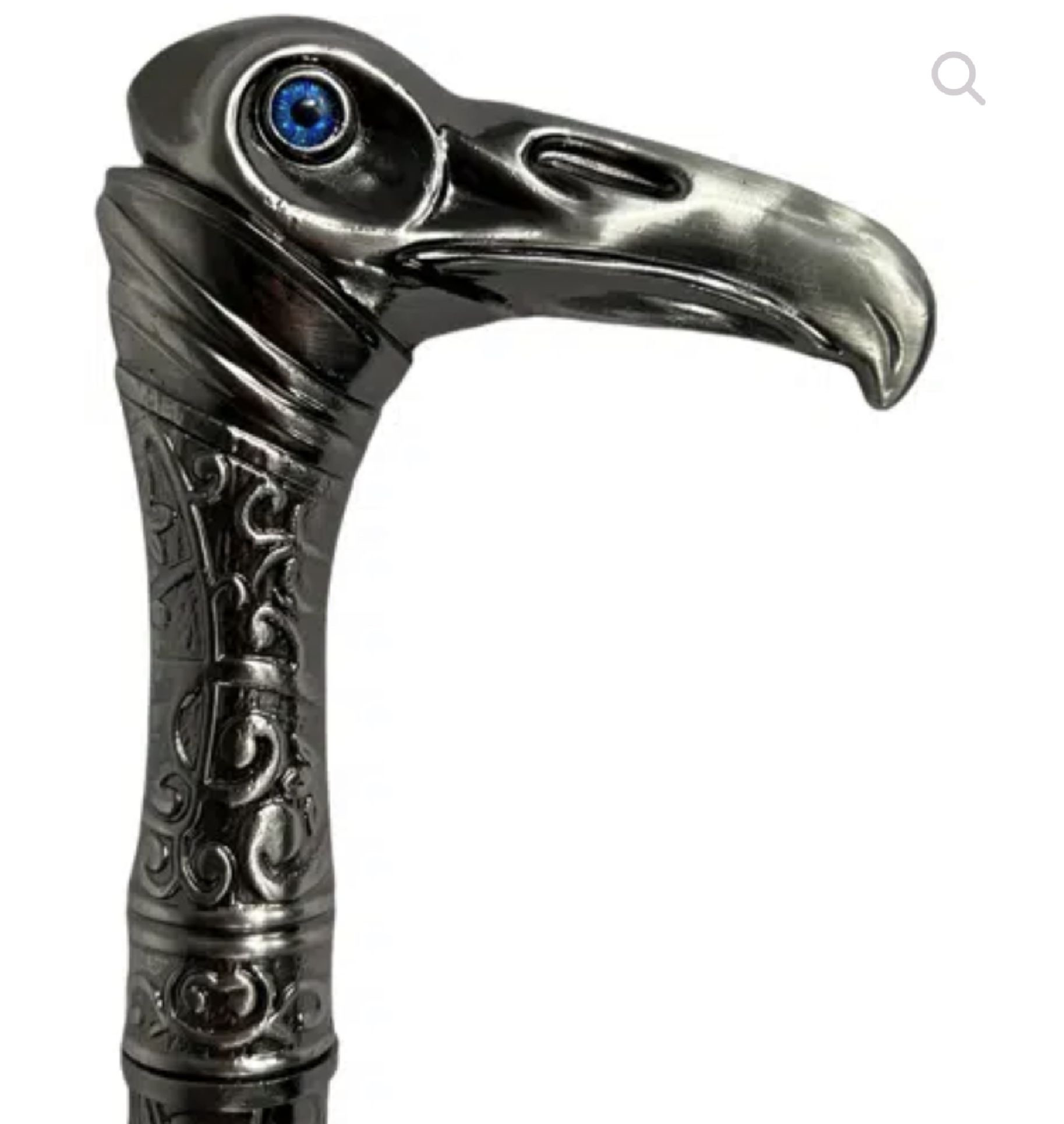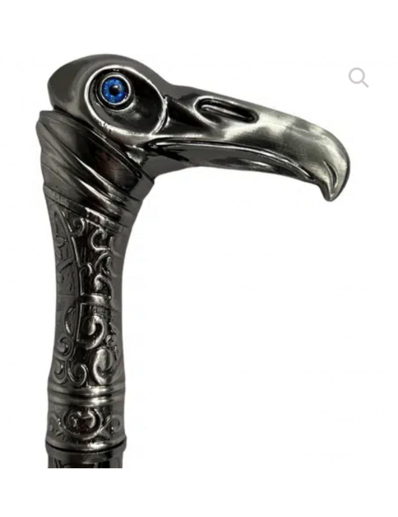 Pommeau en métal en forme de tête de vautour finement décorée .