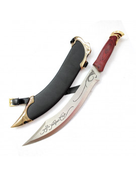 Il est livré avec son support bois décoré ainsi que le fourreau.